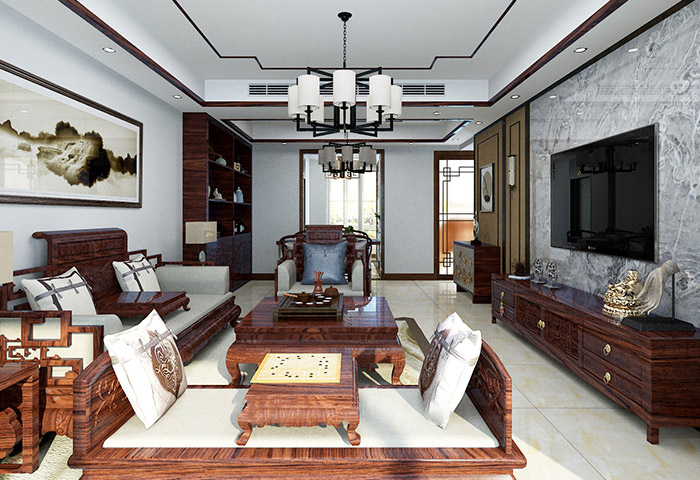悦湖湾135㎡三室两厅新中式风格装修案例效果图