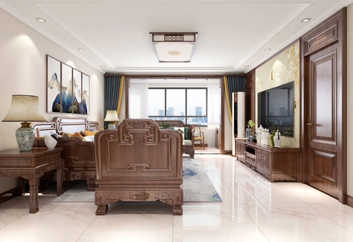 海情御园三室二厅145㎡新中式风格装修案例效果图