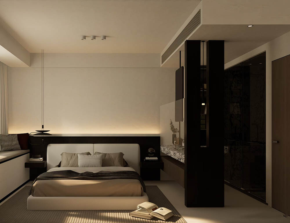 以简洁、清晰和功能性为特征的室内设计;它主要强调了空间的简化和精炼,追求线条简单、空间通透、色彩明亮、材质自然等特点,注重形式与功能的结合。他们希望有一个时尚、现代的功能性空间,在整个空间的设计上用了暖灰调来与简约的线条感来相呼应,能改造出一个通透、流畅的空间感。