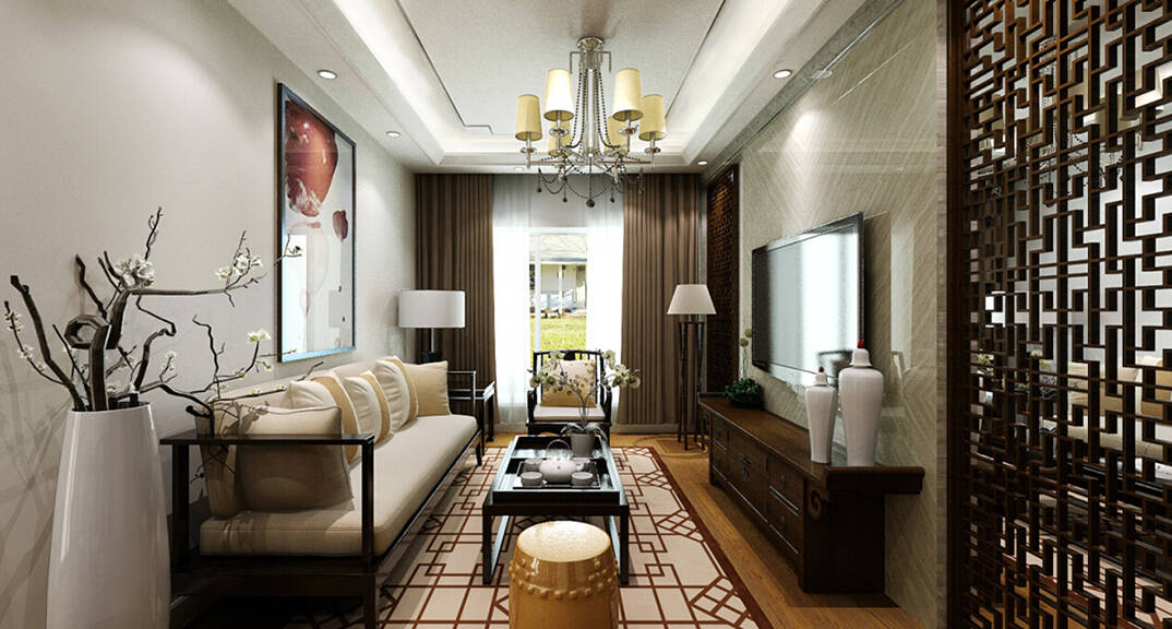 枫林小镇160㎡联排别墅新中式风格装修案例效果图