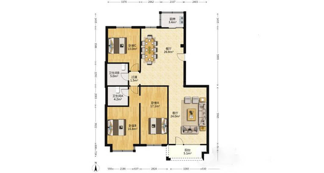 山水名园149㎡三室二厅户型图