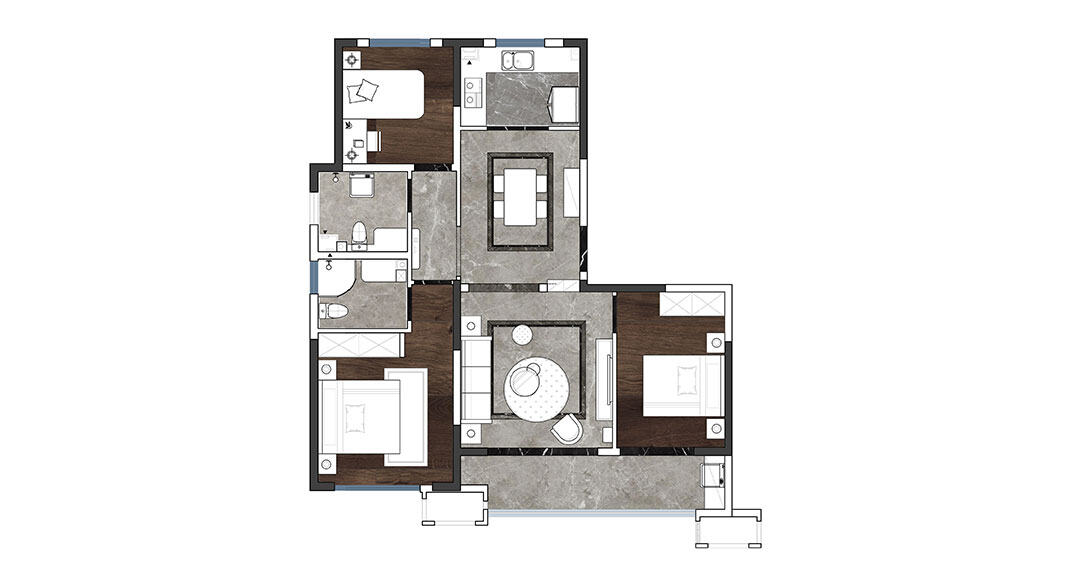 中仁澜山悦119㎡三室两厅新中式风格装修案例效果图
