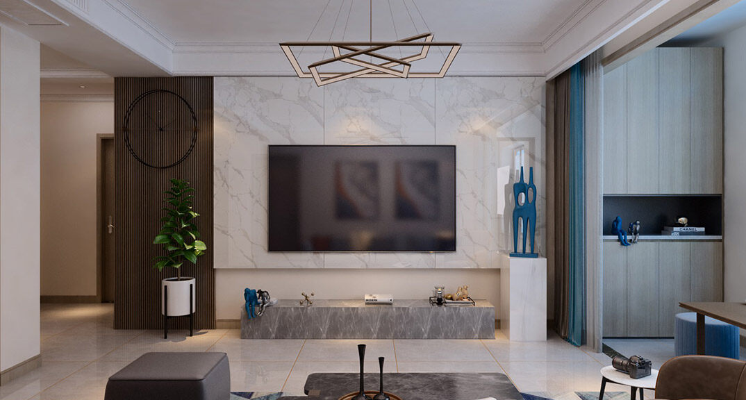 简约风格的特点是将设计的元素,色彩,照明,原材料简化到最少的程度但对色彩,材料的质感要求很高,因此,简约的空间设计通常非常含蓄,往往能达到以少胜多,以简胜繁的效果。此居室整体采用中性色调,稳重,大气,却又不失品味,令人眼前一亮的感觉。餐厅柜子以灰色,加上木饰面的点缀。分割出恰当的比例,以简洁的造型,完美的细节,延续整个风格的特点,使个空间显得简洁大气。