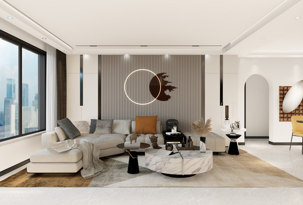 影都壹号127㎡三室两厅意式轻奢风格装修案例效果图